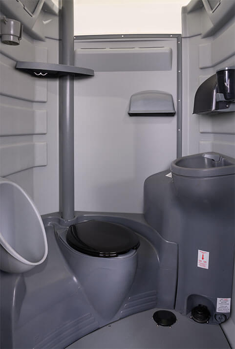 The Deluxe model combines convenience and luxury for events and job sites. It features a sit-down flushable style toilet and hand-washing station to enhance cleanliness and comfort. Its generous space and refined design offer a premium portable restroom experience that’s sure to impress.